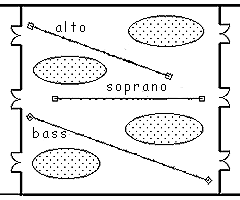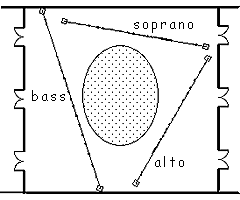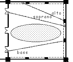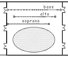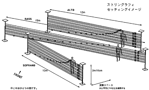 *演奏者はそれぞれの糸にそって、片側約1mの演奏スペースを使用します。